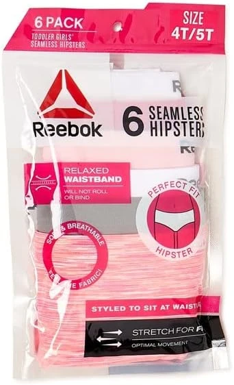 חבילה של 6 תחתונים רכים מכותנה נמתחת לפעוטות בנות של Reebok (ורוד-סגול-4T/5T), ורוד מולטי